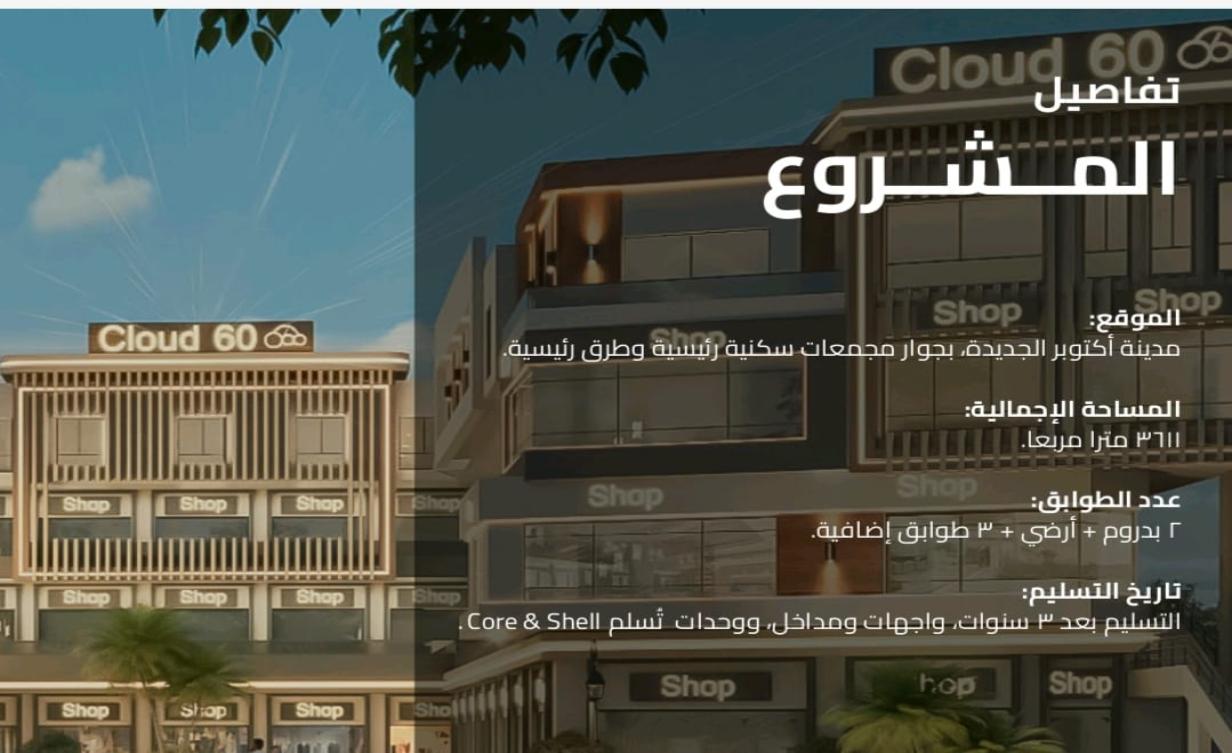 📍مباشرة علي شارع الستين من اهم واميز المحاور باكتوبر الجديدة.